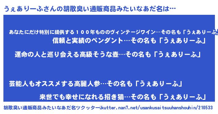 | 欧米人風あだ名 | 『うぇありーふクリステル』 |