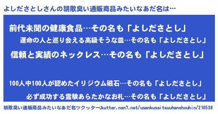 | 意味不明あだ名 | 『とにかく怪しいよしださとし』 |