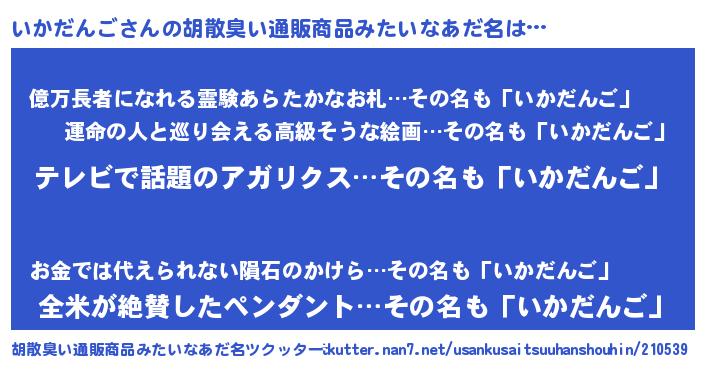 いかだんごさんの胡散臭い通販商品みたいなあだ名をツクッター!