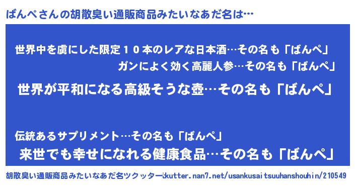 | 意味不明あだ名 | 『ばんぺフォーエバー』『永久保存ばんぺ』 |