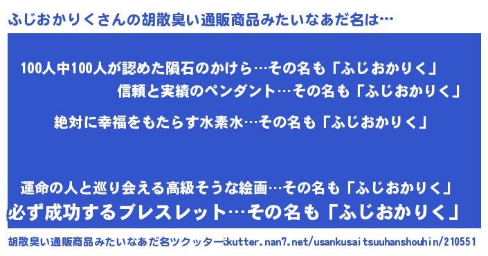 | 意味不明あだ名 | 『永久保存ふじおかりく』 |