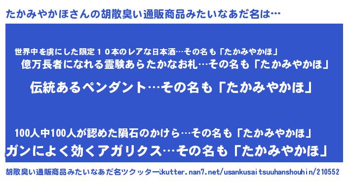 | 意味不明あだ名 | 『とにかく怪しいたかみやかほ』 |