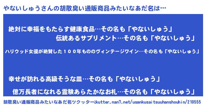 | ピコ太郎風あだ名 | 『ピコヤ郎』『ヤコ四郎』『ヤナ六郎』 |