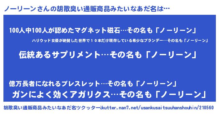 | 男性向けラノベタイトル風あだ名 | 『ダンジョンにノーリーンを求めるのは間違っているだろうか』 |