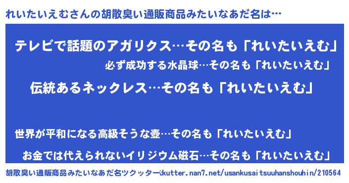 | 意味不明あだ名 | 『とにかく怪しいれいたいえむ』 |