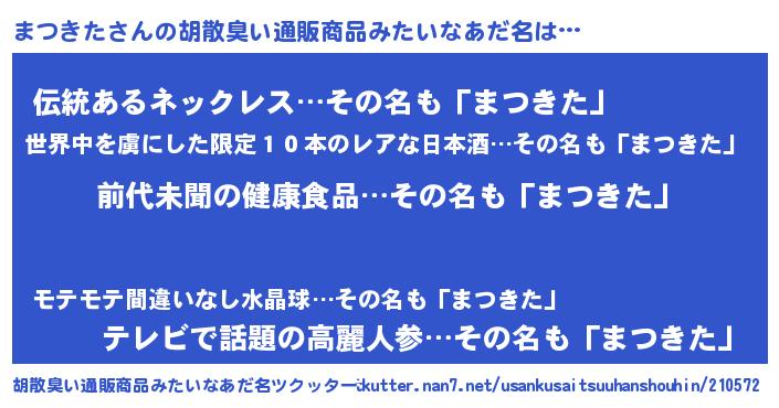 | ヘコむあだ名 | 『まつきた(苦笑)』『まつっ子』 |
