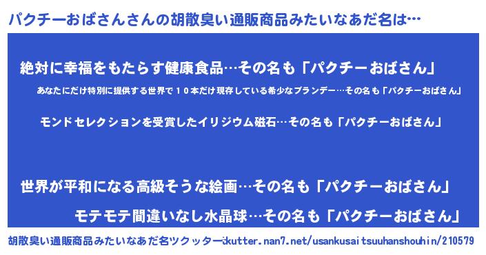 | ヘコむあだ名 | 『パクチーおばさん(爆)』『パクにゅー』 |