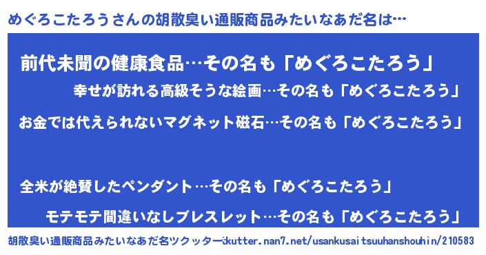 | ヘコむあだ名 | 『めぐろこたろう(笑)』『めぐにゅー』 |