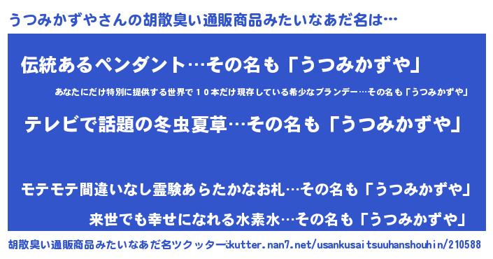 | 意味不明あだ名 | 『自称うつみかずや』 |
