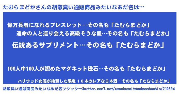 | 意味不明あだ名 | 『とにかく怪しいたむらまどか』 |