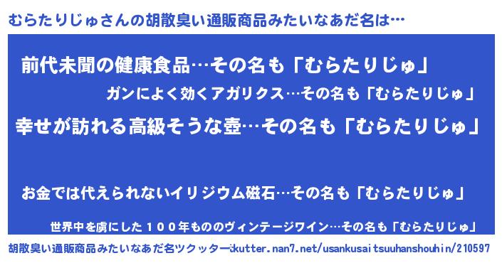 | ヒーロー風カッコイイあだ名 | 『ウルトラむらたりじゅマン』 |