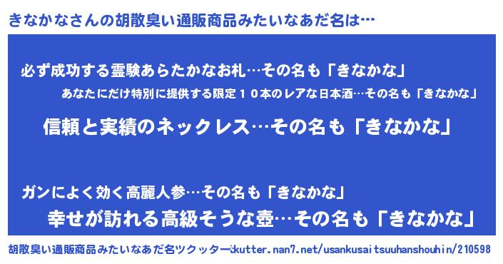 | 意味不明あだ名 | 『とにかく怪しいきなかな』 |