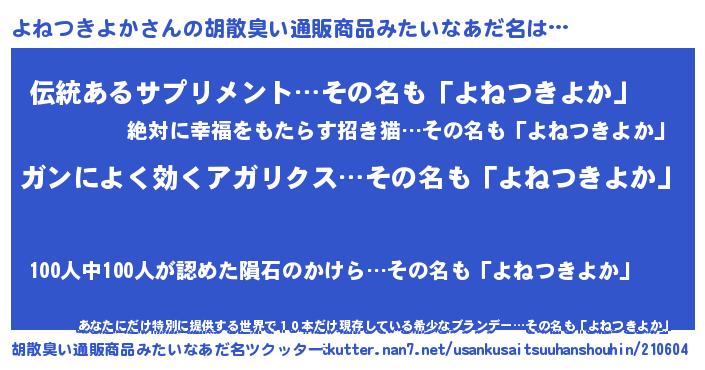 | 意味不明あだ名 | 『自称よねつきよか』 |