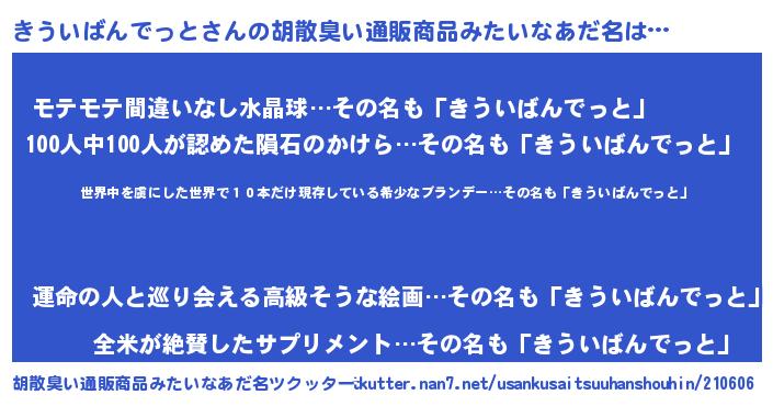 | 意味不明あだ名 | 『住所不定無職きういばんでっと(74歳)』 |