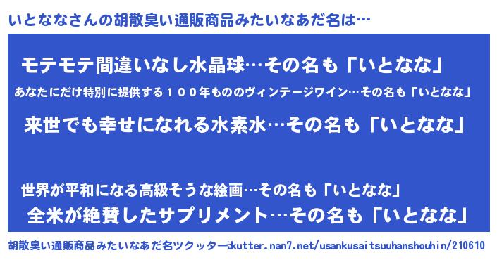 | ヘコむあだ名 | 『いとなな(震え声)』『いとにゅー』 |