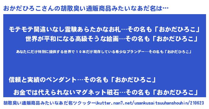 | 意味不明あだ名 | 『住所不定無職おかだひろこ(77歳)』 |