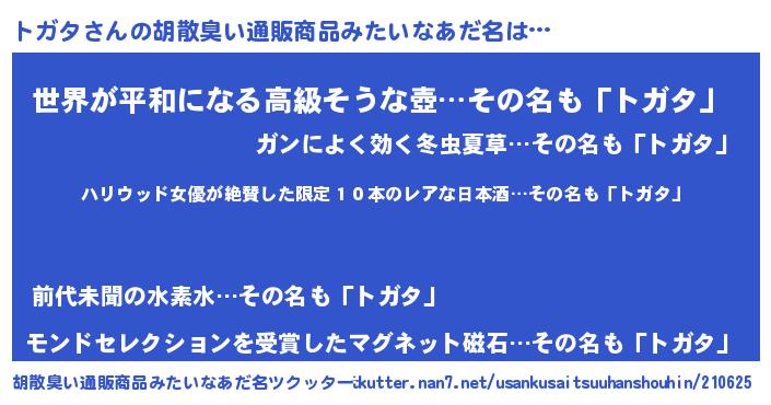| ヒーロー風カッコイイあだ名 | 『仮面トガダー』『ウルトラトガタマン』 |