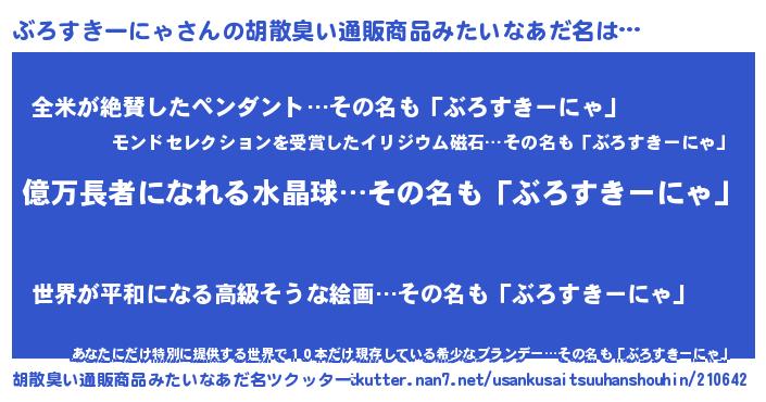 | 恥ずかしいあだ名 | 『プリティーぶろすきーにゃ』『ぶろちん』 |