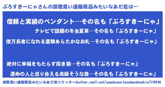 | 恥ずかしいあだ名 | 『プリティーぶろすきーにゃ』『ぶろちん』 |