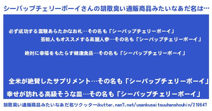 | ヒーロー風カッコイイあだ名 | 『ネオシーパップチェリーボーイ』 |