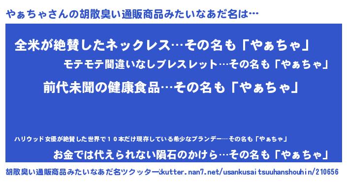 | ヘコむあだ名 | 『やぁちゃ(笑)』『やぁっちょ』 |