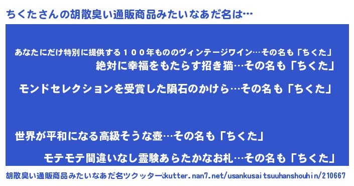 | ヒーロー風カッコイイあだ名 | 『慈愛の使者ちくた』『仮面チクダー』 |