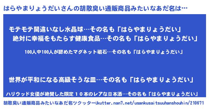 | ヘコむあだ名 | 『はらにー』『はらやまりょうだい(笑)』 |