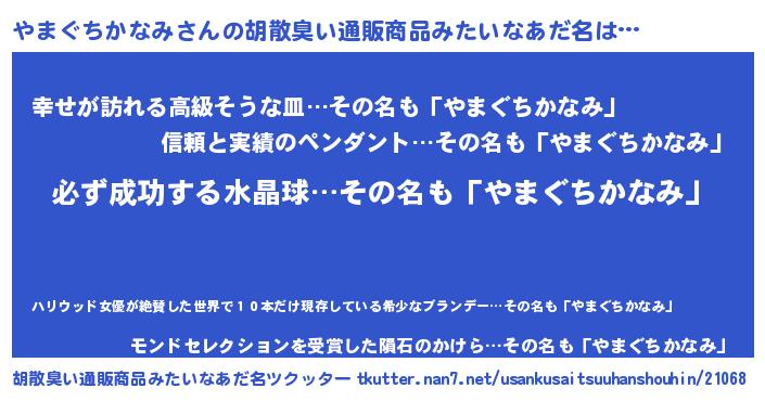 | 男性向けラノベタイトル風あだ名 | 『やまぐちかなみの憂鬱』 |