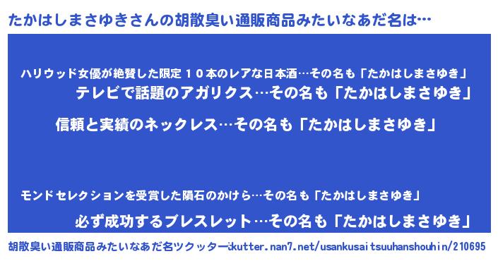 | 男性向けラノベタイトル風あだ名 | 『ダンジョンにたかはしまさゆきを求めるのは間違っているだろうか』 |