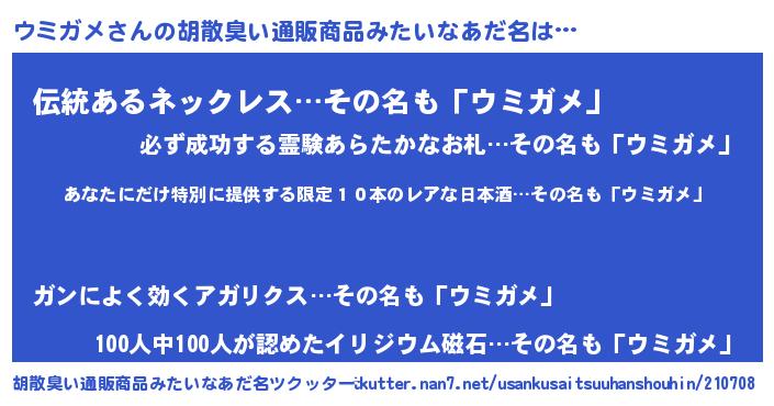 | 意味不明あだ名 | 『住所不定無職ウミガメ(14歳)』 |