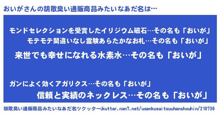 | ヘコむあだ名 | 『おいが(遠い目)』『おいっ子』 |