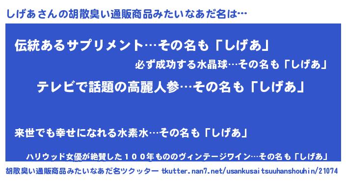 | 意味不明あだ名 | 『自称しげあ』『とにかく怪しいしげあ』 |