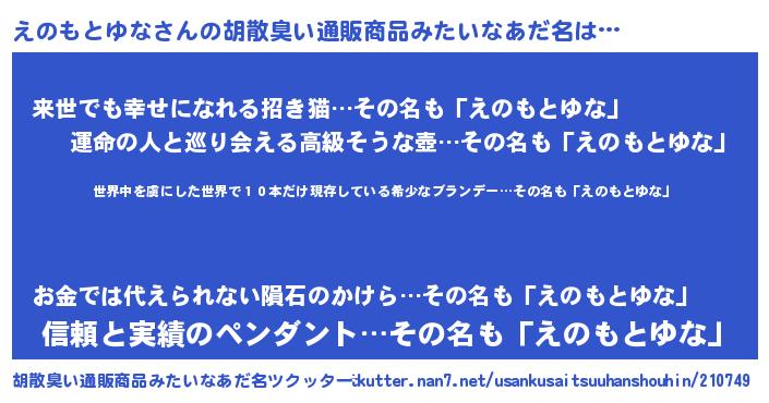 | 意味不明あだ名 | 『住所不定無職えのもとゆな(81歳)』 |