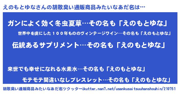 | 男性向けラノベタイトル風あだ名 | 『ダンジョンにえのもとゆなを求めるのは間違っているだろうか』 |