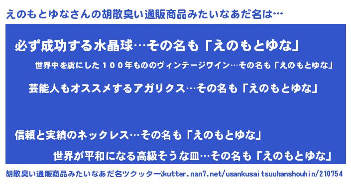 | 意味不明あだ名 | 『自称えのもとゆな』 |