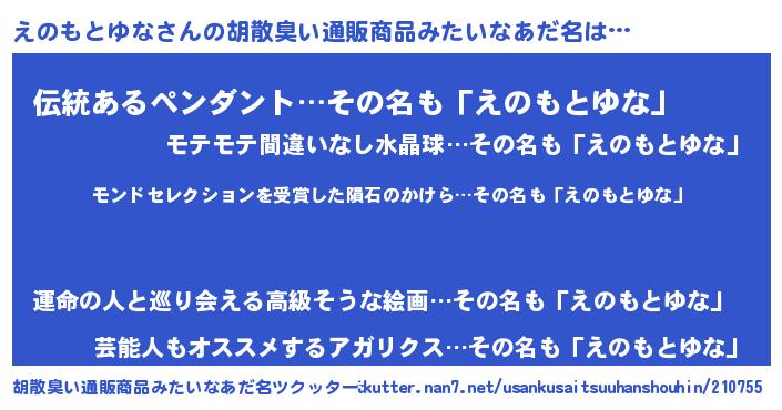 | 肩書あだ名 | 『えのもとゆな機長』『えのもとゆな少将』 |