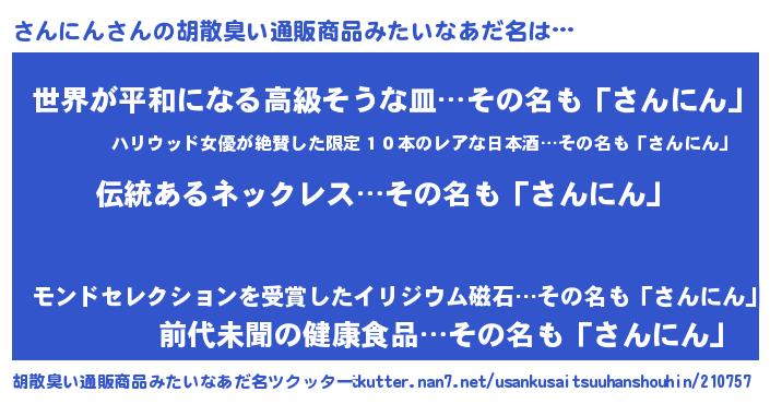 | ヘコむあだ名 | 『さんっぺ』『なまこ酢』『さんもー』 |