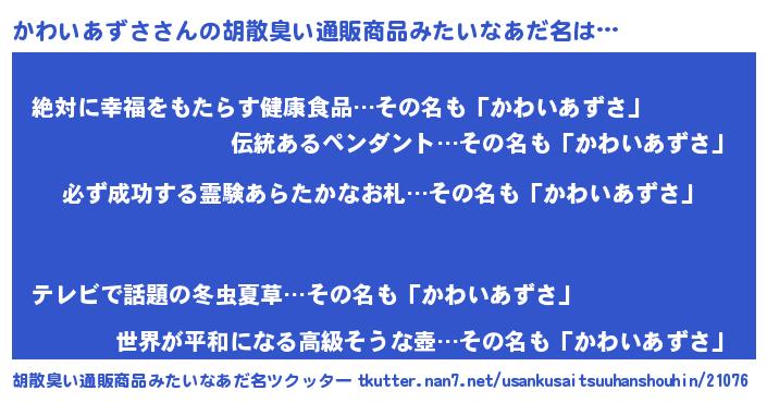 | ヘコむあだ名 | 『かわっふぃ~』『かわいあずさ(爆)』 |