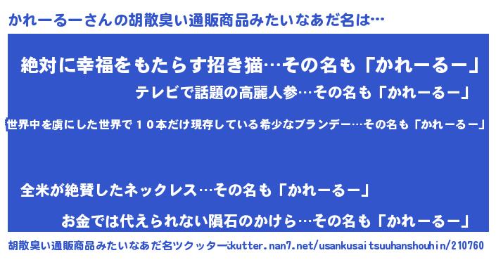 | 伝説のあだ名 | 『古より伝わる勇者かれーるー』 |