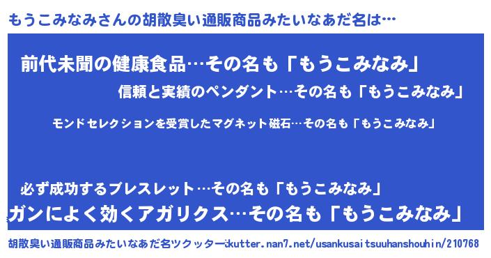 | 肩書あだ名 | 『もうこみなみ教授』『もうこみなみ総統』 |