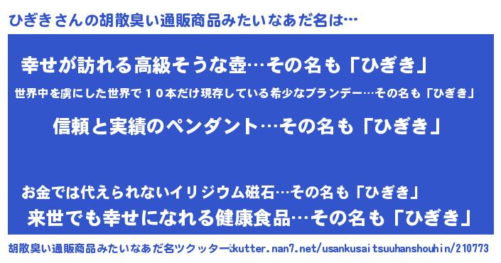 | 意味不明あだ名 | 『めかぶ科ひぎき属』『永久保存ひぎき』 |