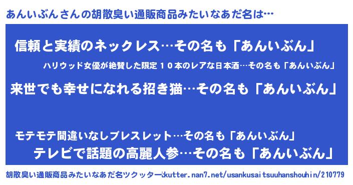 | ヘコむあだ名 | 『あんいぶん(笑)』『あんっぺ』 |
