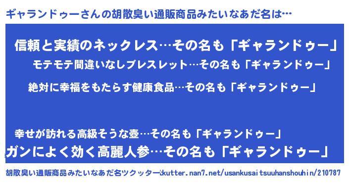 | 男性向けラノベタイトル風あだ名 | 『ギャランドゥーという概念が存在しない退屈な世界 』 |