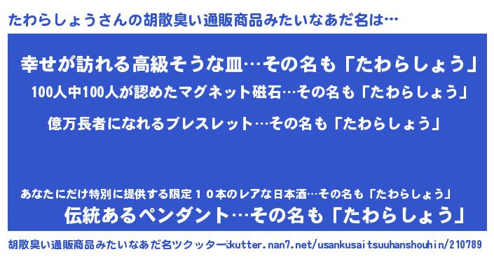 | 男性向けラノベタイトル風あだ名 | 『タワラショウアートオンライン』 |