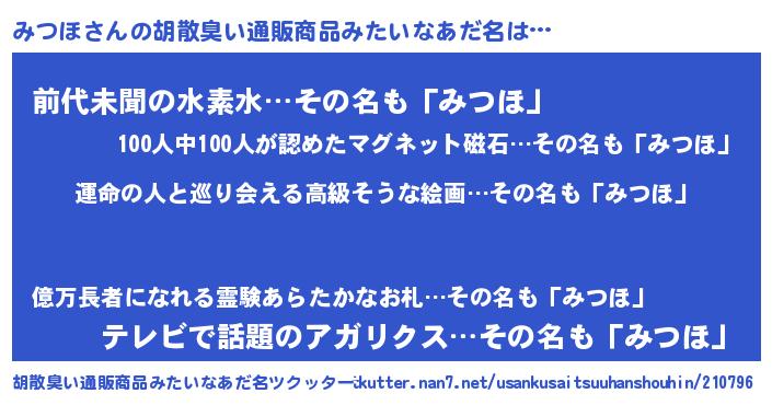 | 意味不明あだ名 | 『みつほフォーエバー』『永久保存みつほ』 |