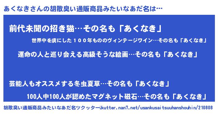 | ヘコむあだ名 | 『酢こんぶ』『あくなき(小並感)』 |
