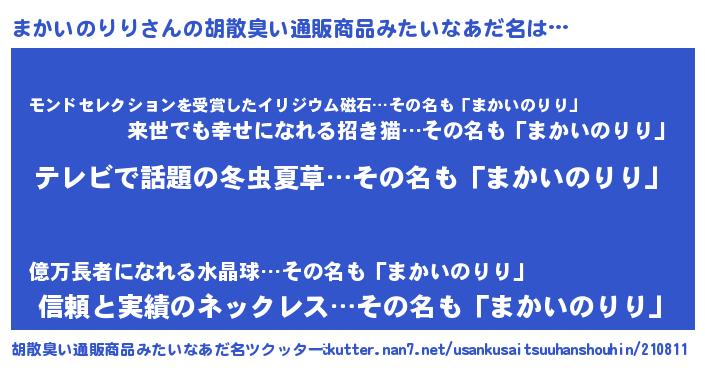 | 意味不明あだ名 | 『自称まかいのりり』 |