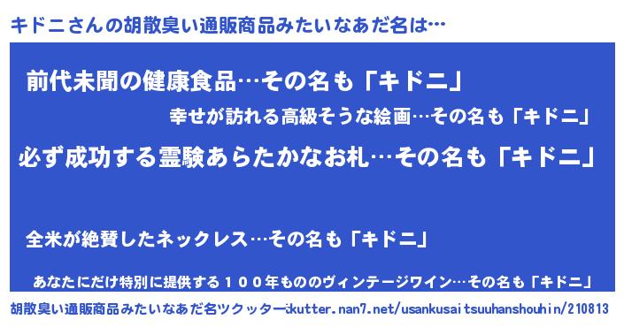 | ヘコむあだ名 | 『キドもー』『キドニ(笑)』『牛乳』 |
