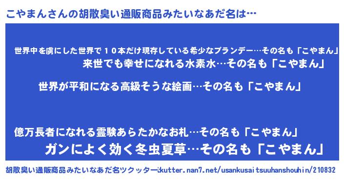 | ヘコむあだ名 | 『豆乳』『こやまん(爆)』『こやもー』 |