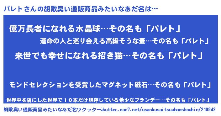 | ヘコむあだ名 | 『パレト(笑)』『パレにゅー』 |